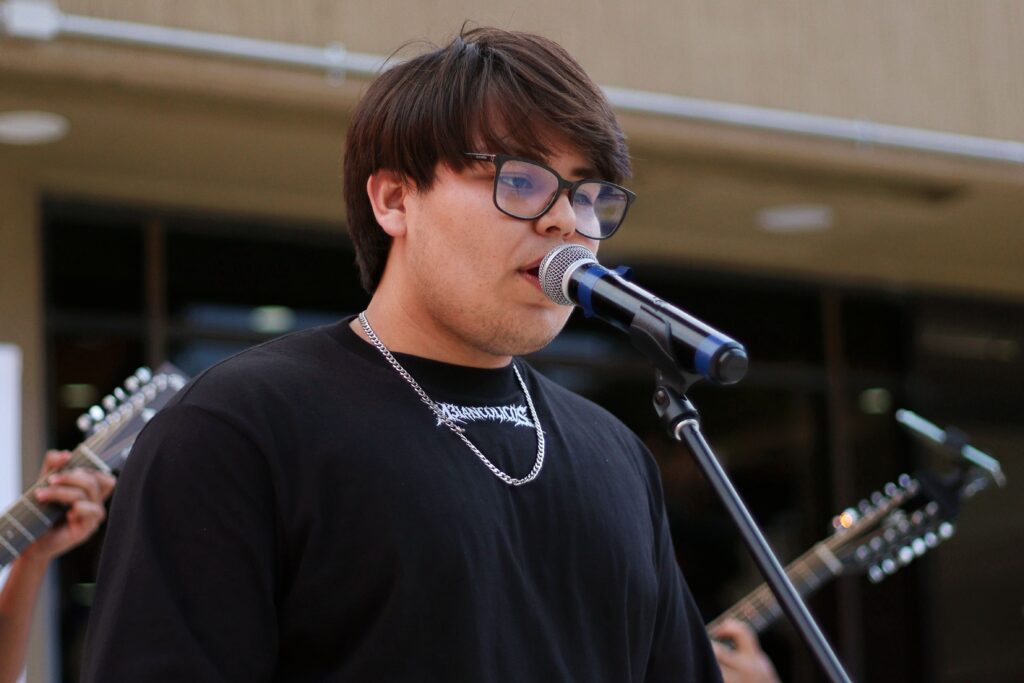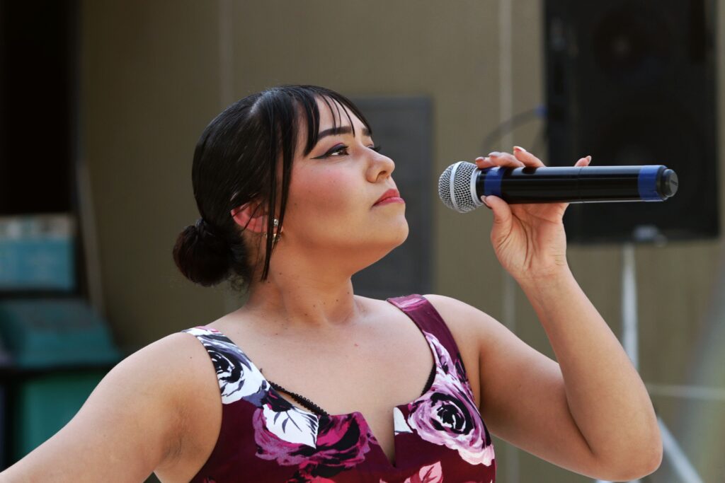 La tarde inició con la participación de Heidi Cantú, egresada de la Licenciatura en Danza, quien contagió al público con su carisma y una selección de éxitos conocidos que encendieron el ánimo del anfiteatro. Posteriormente, Betsil VH, estudiante de la Licenciatura en Música, presentó composiciones de su autoría, mostrando sensibilidad y frescura en cada interpretación.